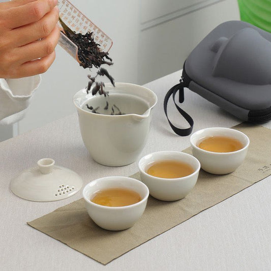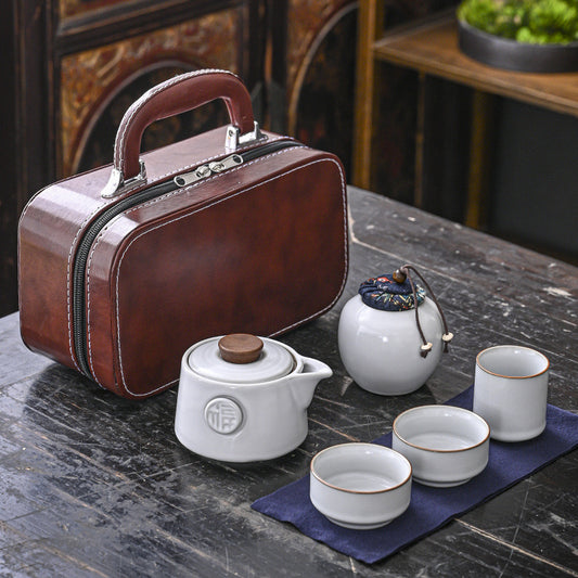 Set de Té Portátil de Porcelana con Estuche de Viaje