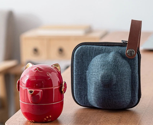 Set de Té Portátil "Gato de la Suerte" con Estuche - Diseño Desmontable