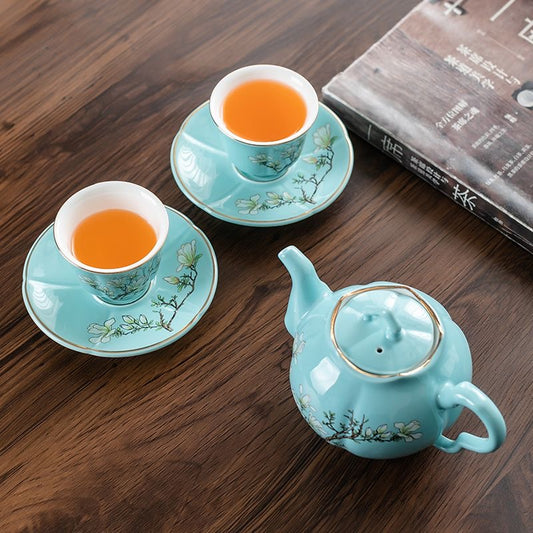 Juego de Té de Porcelana con Diseño Floral Azul