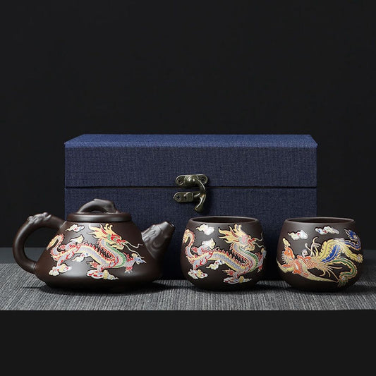 Juego de Té de Arcilla Yixing con Motivos de Dragón