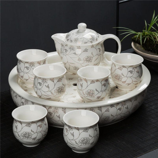 Juego de Té Chino de Porcelana con Motivos Florales Tradicionales