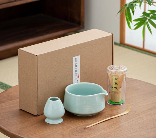 Juego de Herramientas de Té Matcha de Bambú - Batidor, Soporte Cerámico, Cucharón y Cuchara