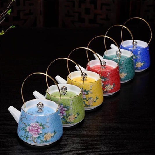 Tetera de Porcelana con Asa y Distintos Motivos Artísticos