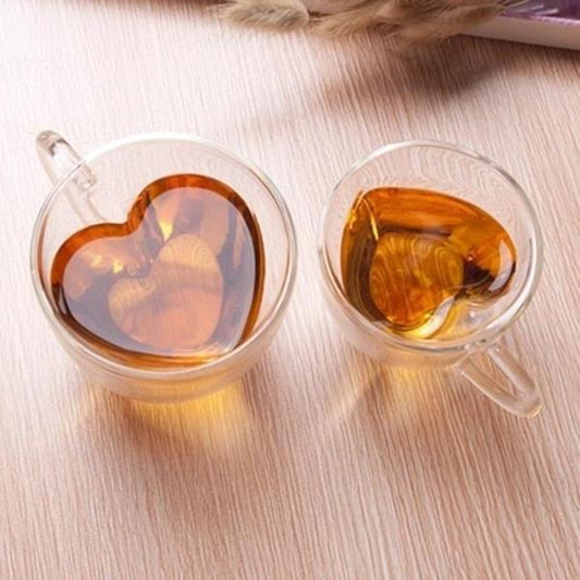 Taza de Vidrio Doble Fondo en Forma de Corazón